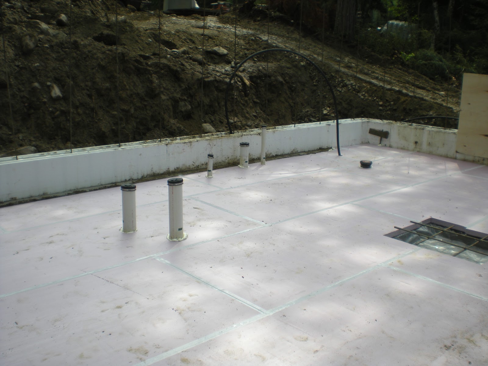 The next steps are filling in and compacting the inside area under the basement slab and then laying the foam insulation that will force the heat from the in-floor heating system up into the house.