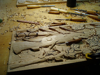 March 11, 2008 johnhuisman These pictures were taken a few weeks ago as I was just getting started on this carving. These are relief carvings on panels for a door I am building.