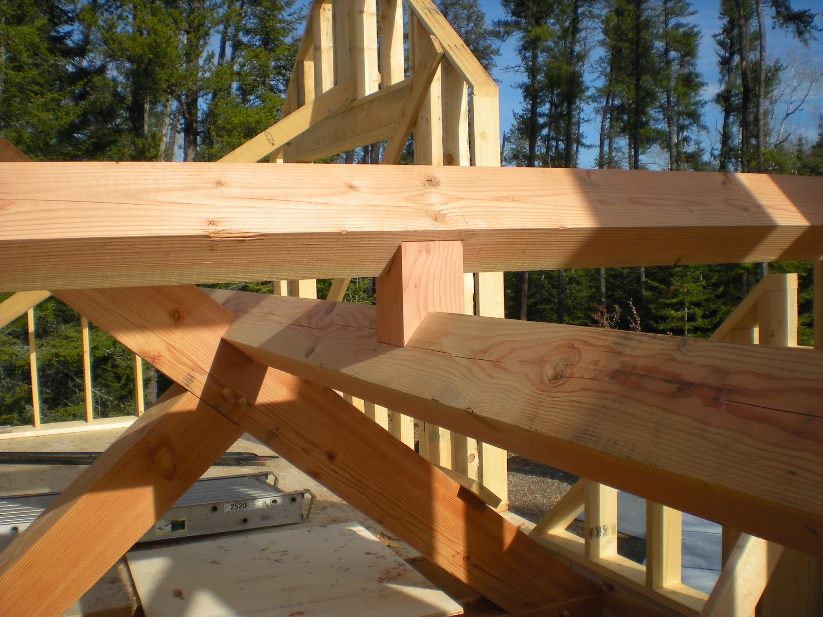 It is a home recently completed near Ely Minnesota using large Douglas Fir timber framing for parts of the roof support and entry. Here are a couple pictures and more can be seen at the website gallery here or on the facebook gallery here.