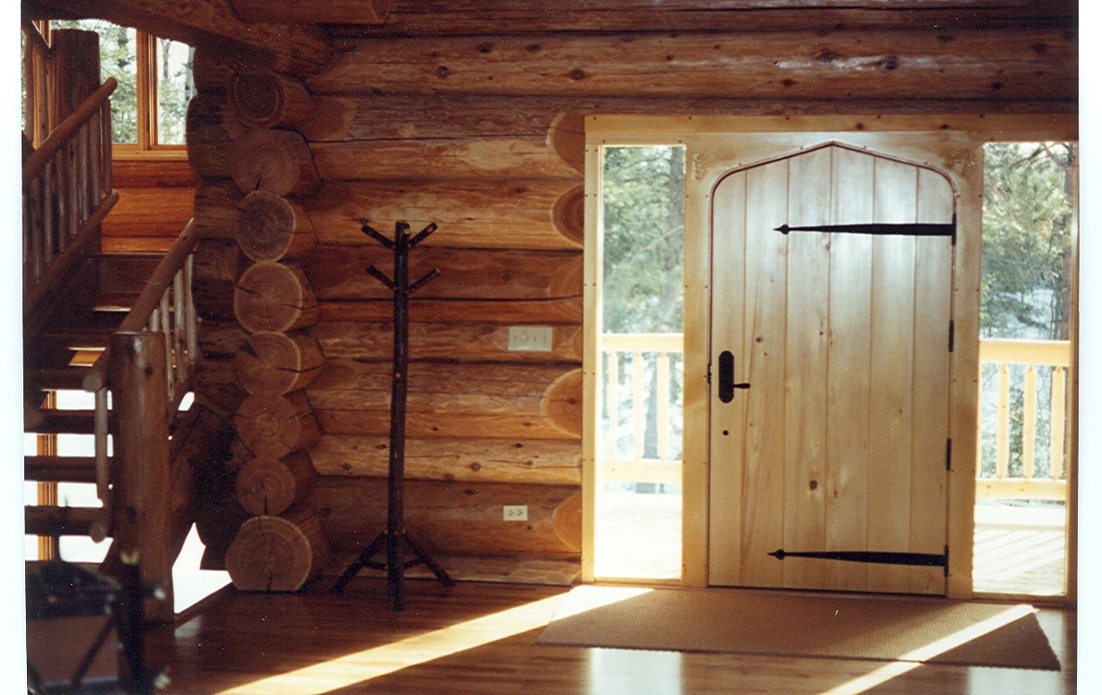 This project features one of my earlier custom entry doors. Because of the double entry, one over the other, there were two identical entry doors. They are made of Alaskan yellow cedar, which is unlike the Western red Cedar in that it is a harder and tighter grain more suitable for working and carving.