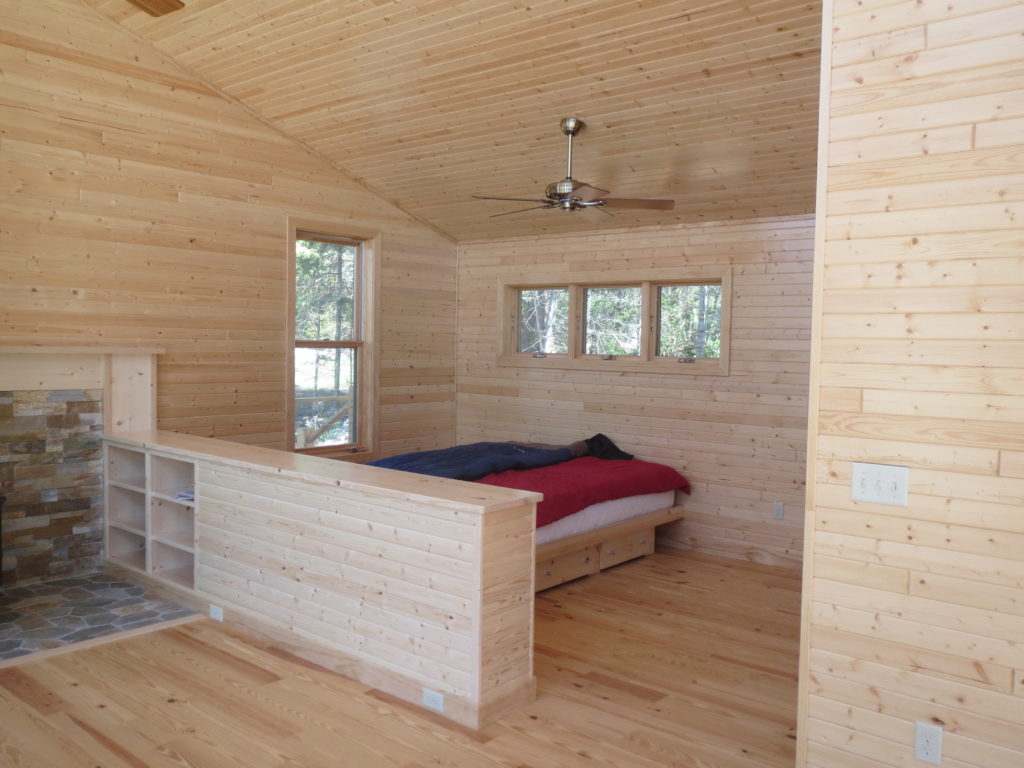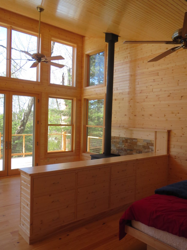 This is a very small cabin built on an island in the Ely area. The architect, Ken Stone, won an award in the St. Paul Minneapolis paper for this plan. Bath vanity, stone floor Cable railings Island cabin lake side Island cabin, fall colors Island cabin, fall colors Island cabin, fall colors kitchen area Kitchen, one room cabin One room lake cabin one room pine paneling Pin cabinet room devider pine cabinet room devider woodstove (1) pine cabinet room devider woodstove pine paneling lake windows Pine walls and ceiling Tall windows lake side More projects can by Huisman Concepts be seen here.