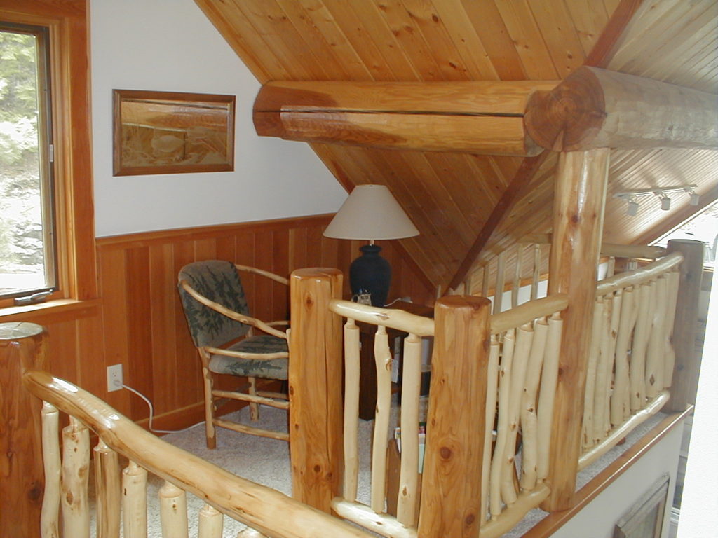 Living room stone douglas fir & cedar logs