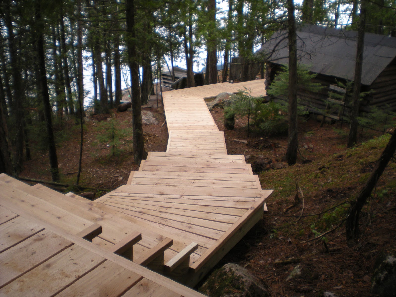 Scott and Chris did a wonderful job building this stairway to the lake from a log home we built a few years ago. The decking is all Western Red Cedar: