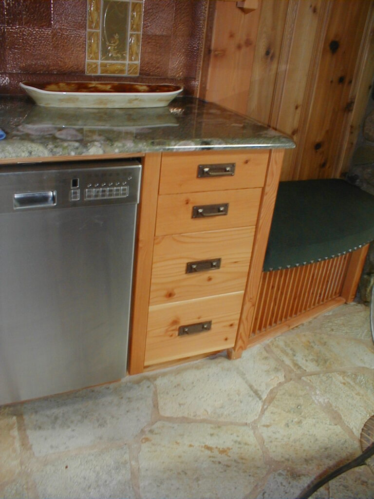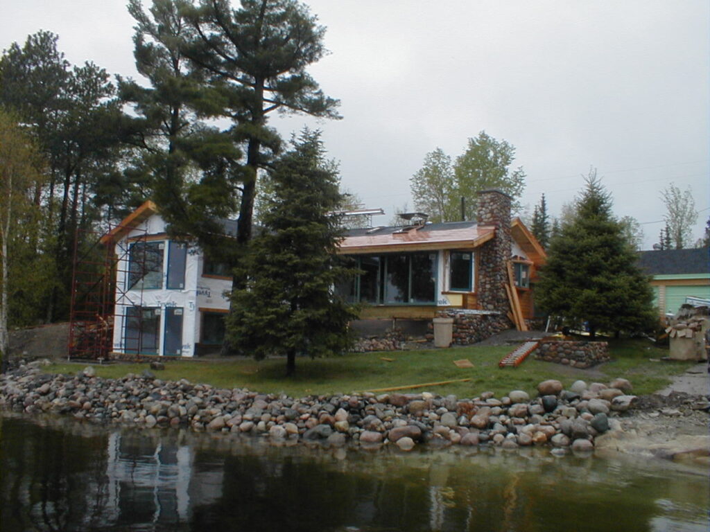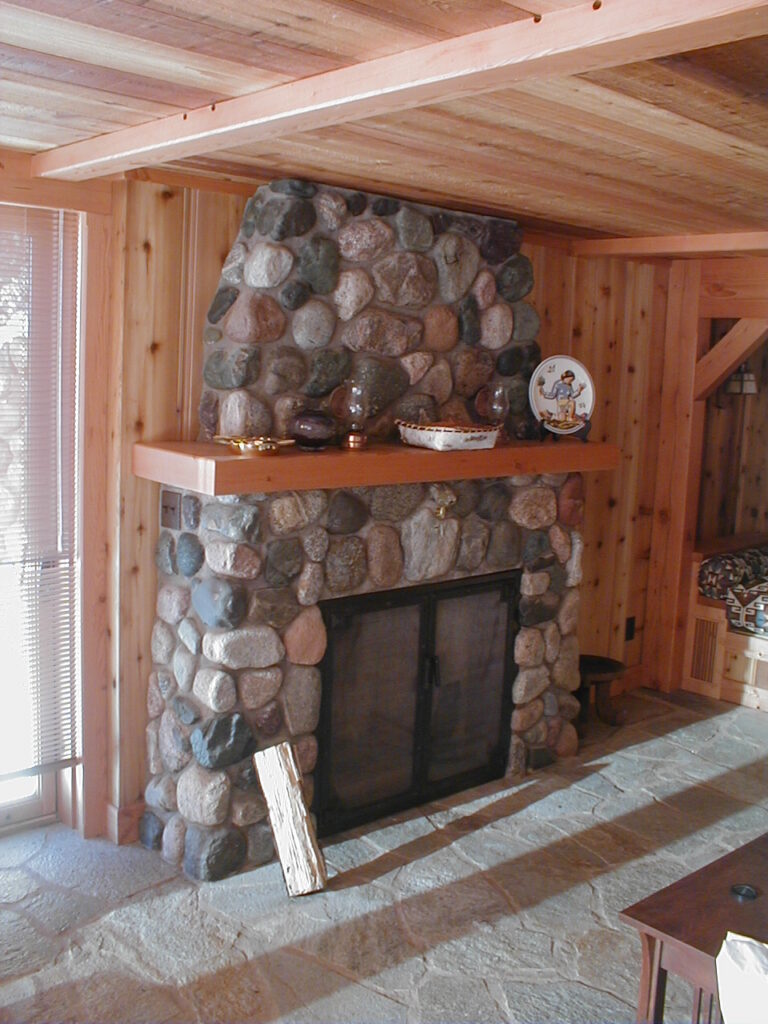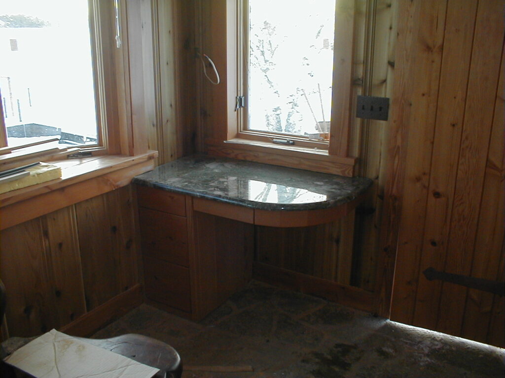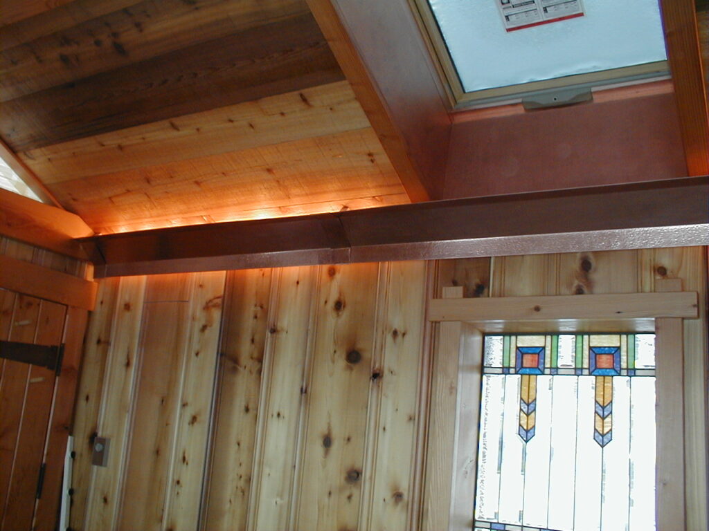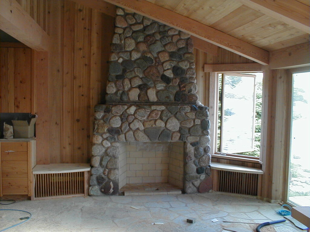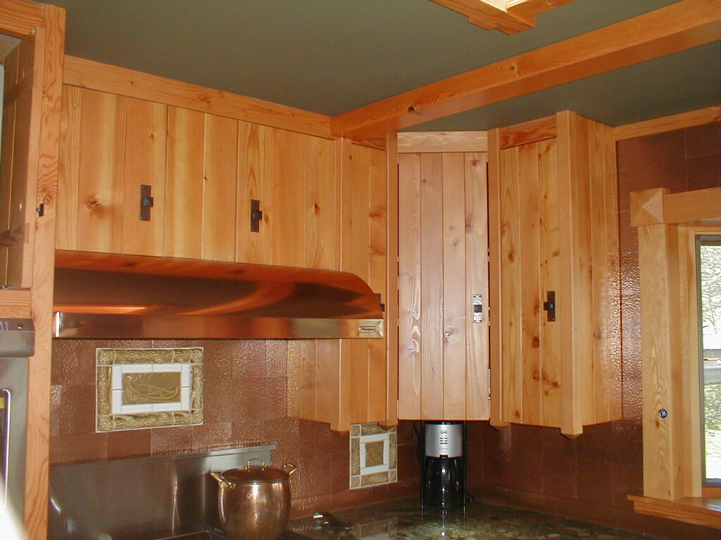 Here are some pictures of the interior of the finished project. There was a lot of custom copper work and milling of custom paneling and Douglas fir beams. Stone floors, granite countertops. Stone siding and fireplaces and custom built Doug fir and quarter sawn white oak cabinets.