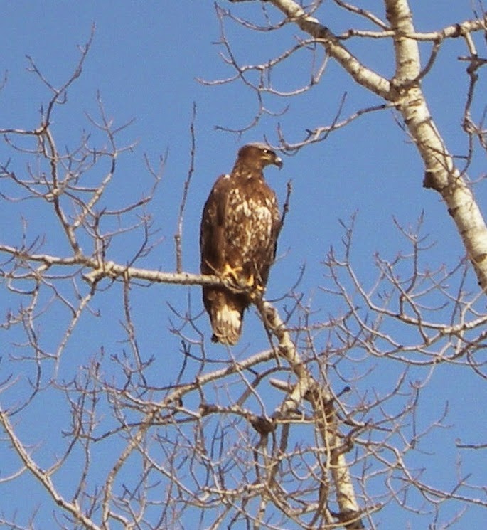 I got a good shot of an immature Bald Eagle in a tree… a very perfect blue sky as a backdrop.