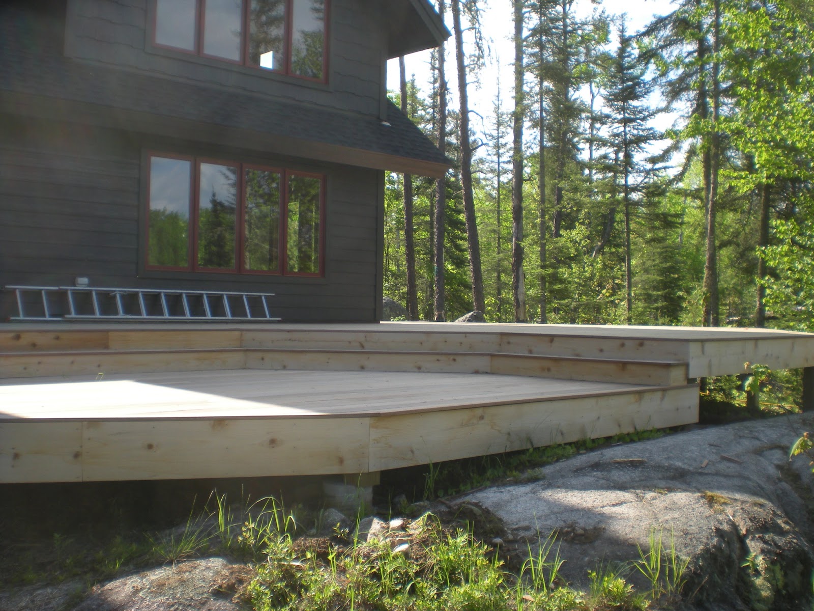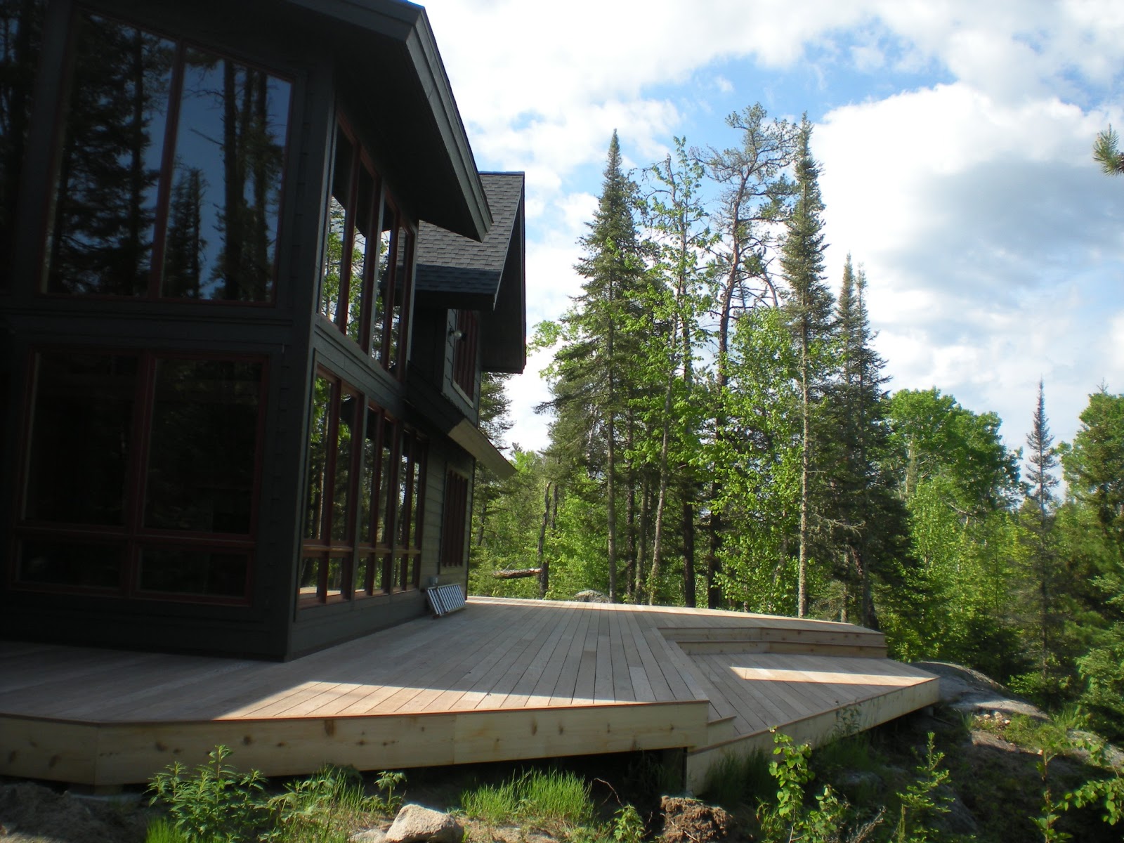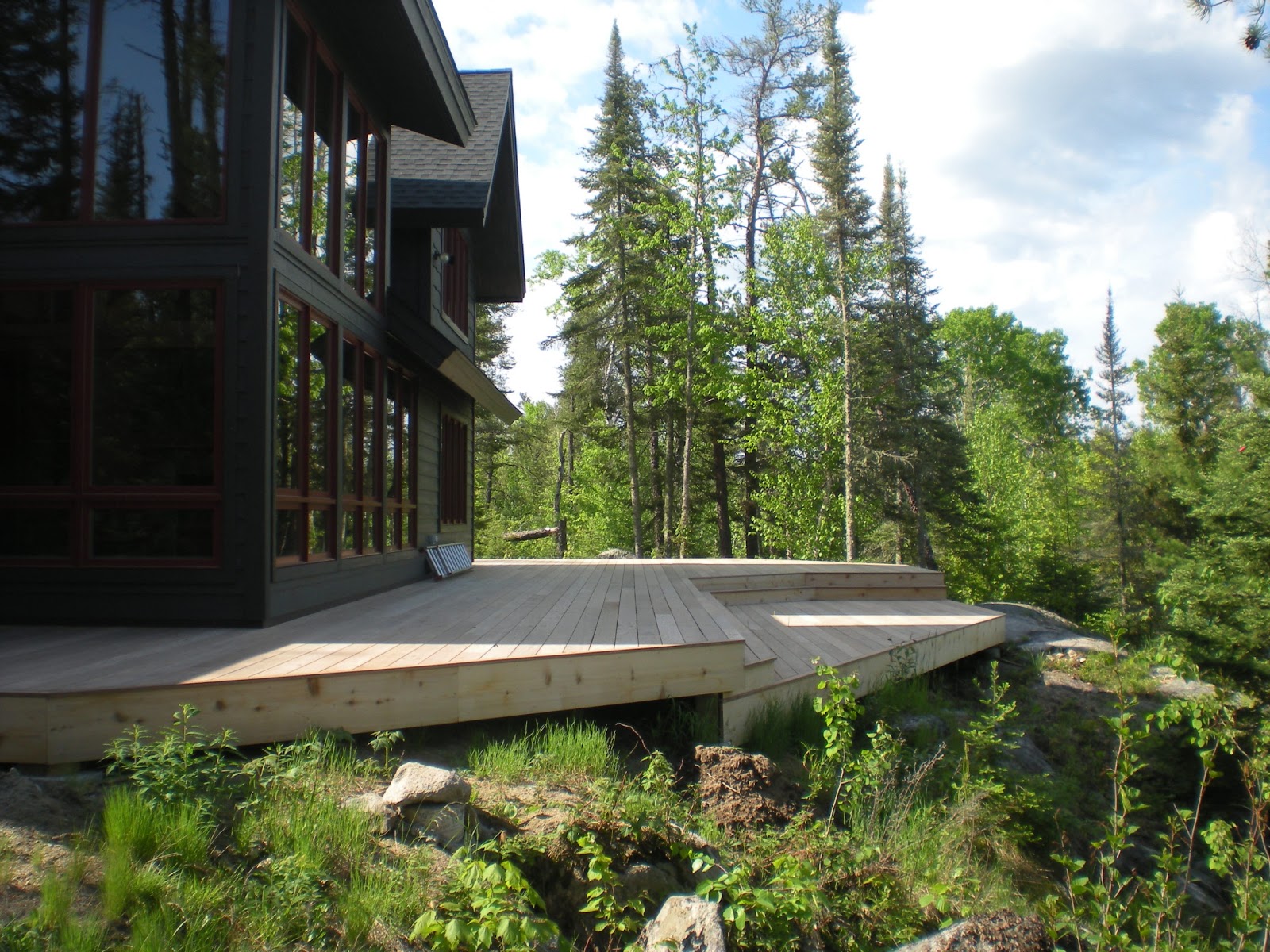 The deck is made of Ipe, (pronounced ee-pay). It is a Brazilian Hardwood that is extremely dense and strong, (and incidentally, available locally at Voyageur Lumber in Ely).
