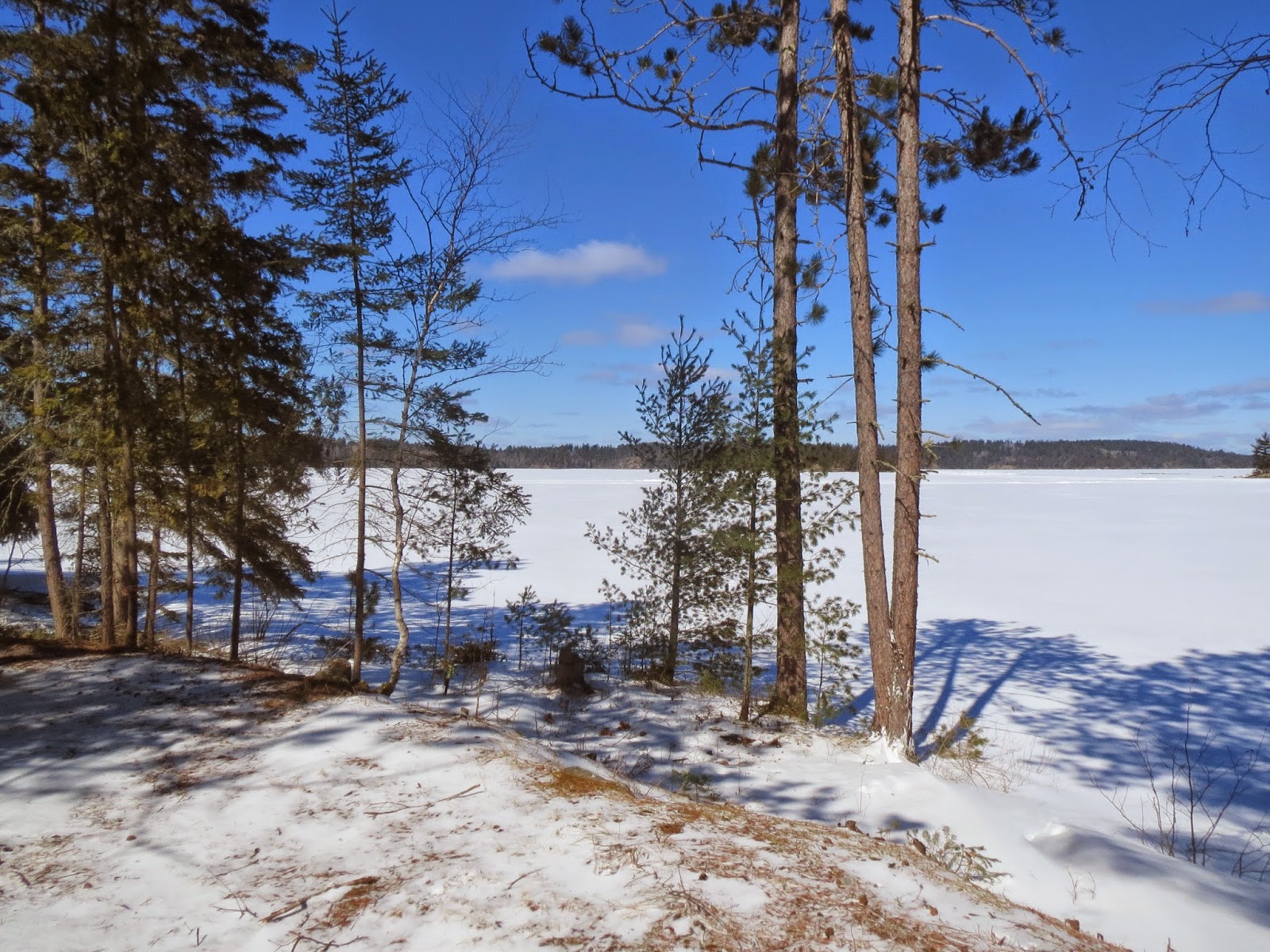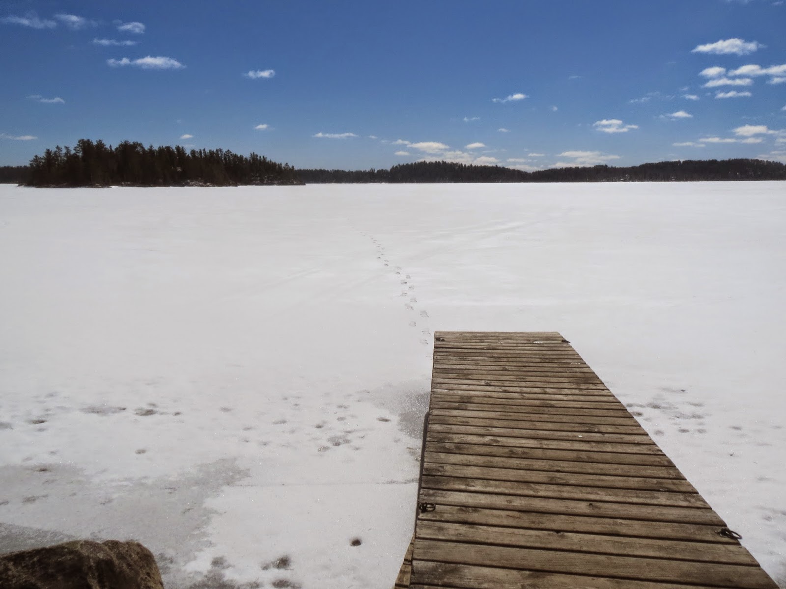 Spring is coming in Ely. We have had some warm weather and the majority of the snow has melted but there is still a lot piled around and in the woods. This week I took a walk out to an island on Burntside Lake to take some measurements for a cabinet I have to get built. It was a windy but sunny day and the ice was perfect for walking. It was only a mile each way so I was back in a little over an hour.