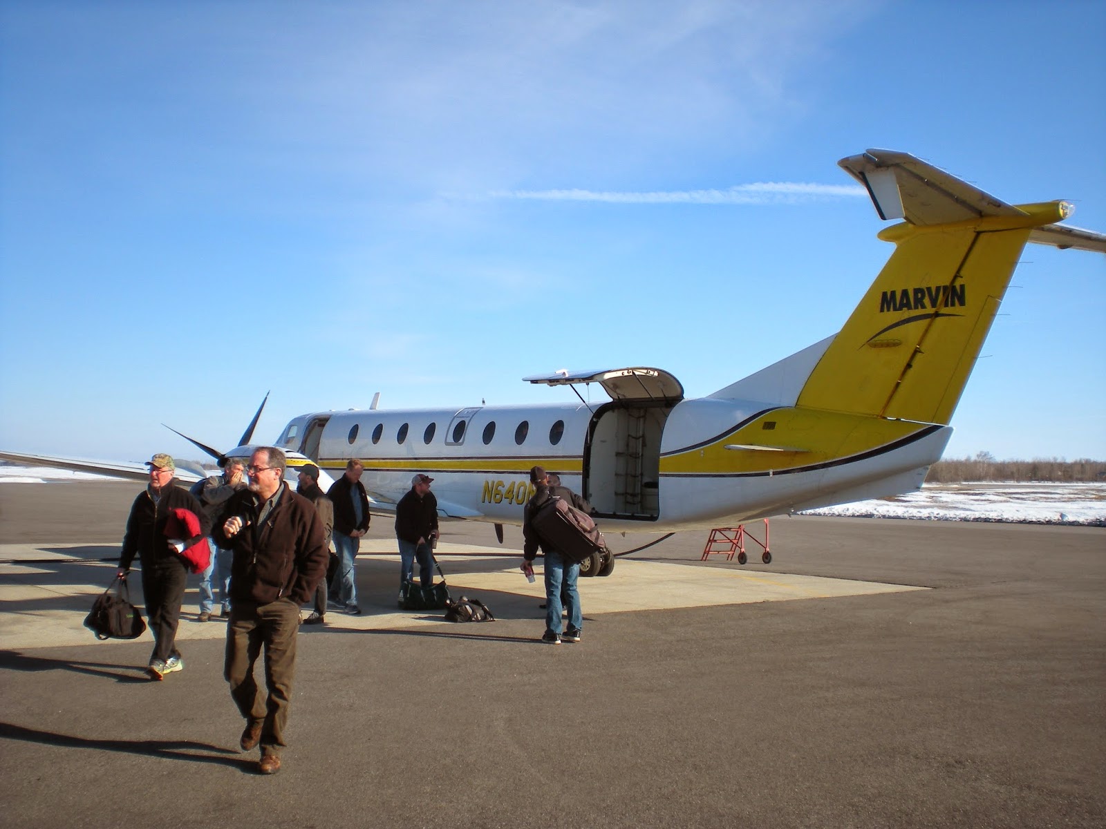 I think they said this was the largest of the four planes in the Marvin fleet. It is a Beech 1900c., (said as if I knew something about planes).